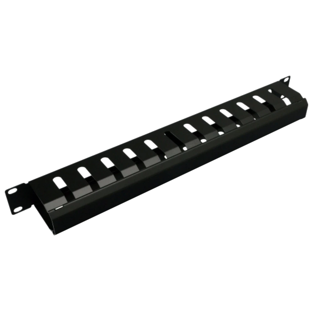 Кабельний організатор 1U металевий перфорований з кришкою, чорний 1U