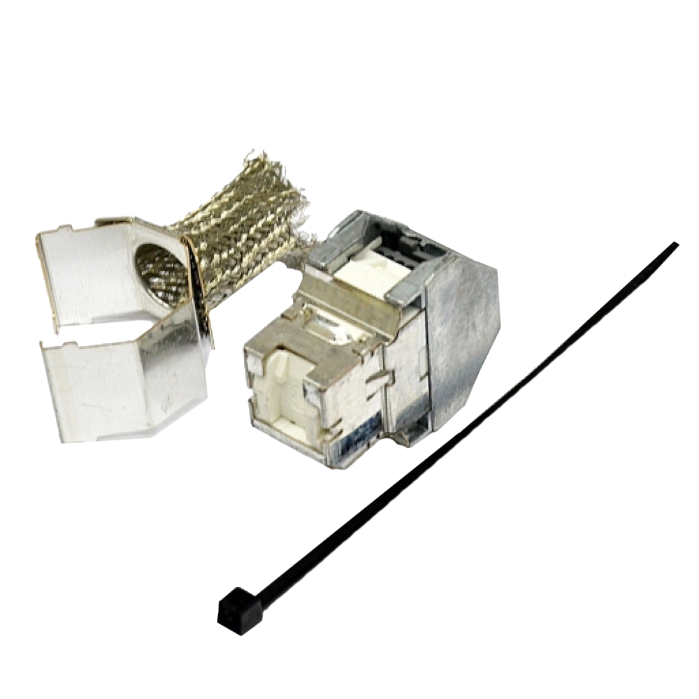 Екранований самозатискний модуль Corning кат 5е FTP для комп'ютерних розеток і патч-панелей використовується при роз'єднанні крученої пари з екраном на роз'єм форм-фактору RJ-45. Підключення крученої пари відбувається за колірними схемами T568A або T568B. На лицьовій стороні розташований роз'єм на 8 пін із захисною шторкою від пилу, призначений для підключення конектора від патч-корду. На тильній стороні розташований конектор IDC типу (insulation displacement contact – монтаж з прорізанням ізоляції) в який підводяться 8 жил крученої пари і затискаються між мідними ножами модуля, що звужуються, за допомогою затискної кришки зусиллями пальців руки. Для монтажу достатньо використовувати кусачки для видалення надлишків жил крученої пари. Після роз'єднання кабелю модуль встановлюється в пластикову або металеву рамку розетки або патч-панелі з кріпильною планкою Keystone (IEC 60603-7). Модуль RJ-45 категорії 5e розрахований на швидкість передачі 1 Гбіт/с та підходить для живлення через Ethernet (PoE). Металевий корпус підтримує можливість підключення екранованого кабелю.