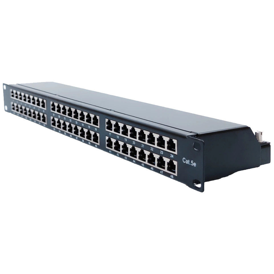 ● Категорія: cat. 5e;● Конструктив, дюйм: 19″;● Кількість портів: 48;● Екранування: STP;● Висота: 1U;● Організатор кабелю;● Заземлення