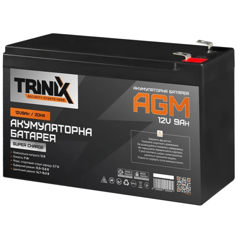 Свинцево-кислотна акумуляторна батарея TRINIX SUPER CHARGE 9А•г 12В