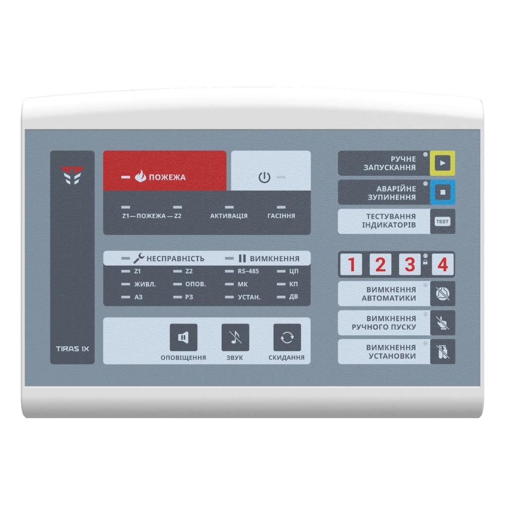 Сучасний прилад для керування одним напрямком пожежогасіння (газове, порошкове, аерозольне) для роботи в автономному режимі або в складі пожежних систем сигналізації «Tiras PRIME» та «Tiras PRIME A». Функціональні можливості та універсальність ПУіЗ «Tiras 1X» роблять його вдалим рішенням для реалізації систем пожежогасіння будь-якого розміру. Системна шина RS-485 для роботи з ППКП серії «Tiras PRIME»; Робота з ППКП «Tiras PRIME A» за допомогою модуля AM-Converter; Вхід для моніторингу стану дверей; Вихід для сигналу «Автоматику вимкнено»; Вихід «Тривога», який спрацьовує при пожежі в одній з зон (наприклад, для вимкнення вентиляції); Можливість програмування з персонального комп’ютера чи смартфону/планшету при використанні ПЗ «tLoader». Прилад оснащений USB-інтерфейсом
