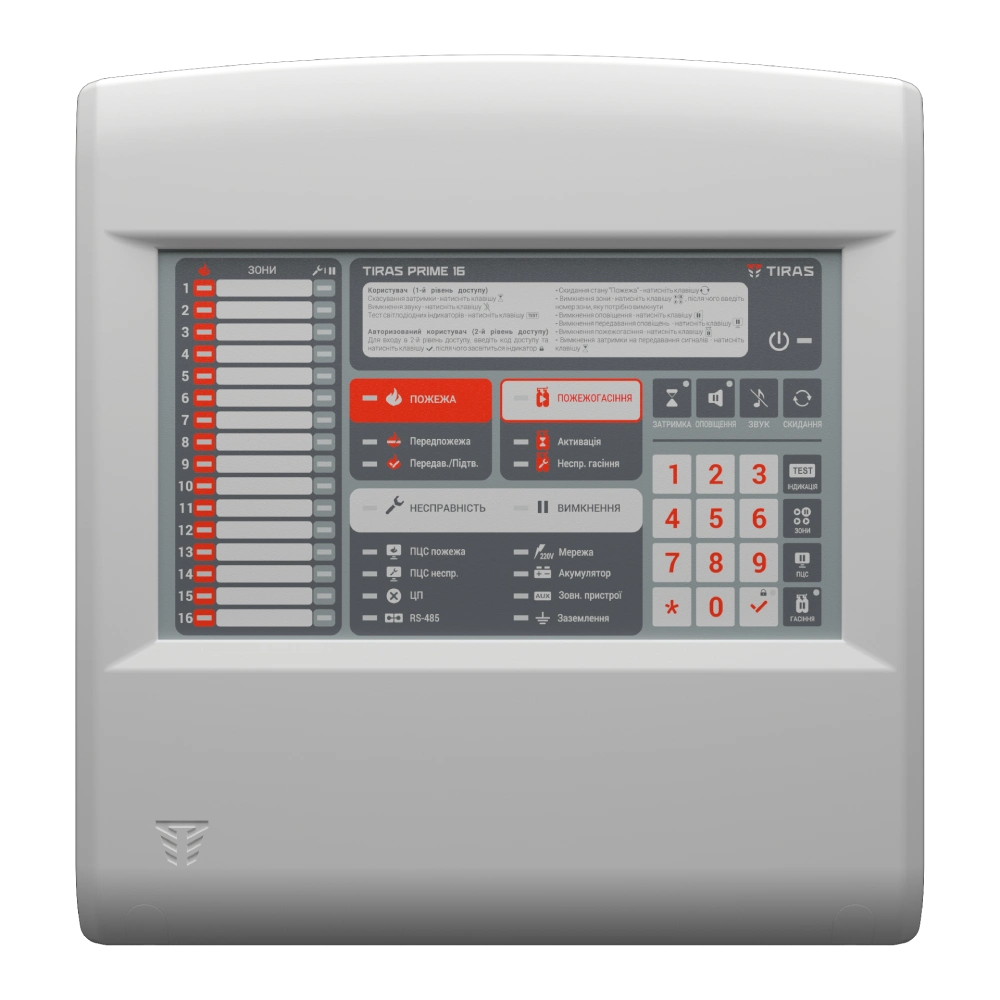 Tiras PRIME – це нова серія систем пожежної сигналізації. У Tiras PRIME ми не йшли на компроміси і сконструювали його з нуля. Новий ергономічний корпус, інтуїтивний інтерфейс, підтримка мобільних сервісів, розширення системи, потужний блок живлення – це лише частина нововведень Tiras PRIME. Функціональні можливості та набір додаткового обладнання Tiras PRIME дозволяють проектувати системи пожежної безпеки для різних типів і розмірів об'єктів – магазини, офіси, складські приміщення тощо. Все обладнання серії «Tiras PRIME» сертифіковано згідно з групою стандартів EN-54.16 зон пожежної сигналізації; Три типи верифікації спрацьовування; 2 релейних програмованих виходу; Контрольовані виходи "Пожежа", "Несправність".