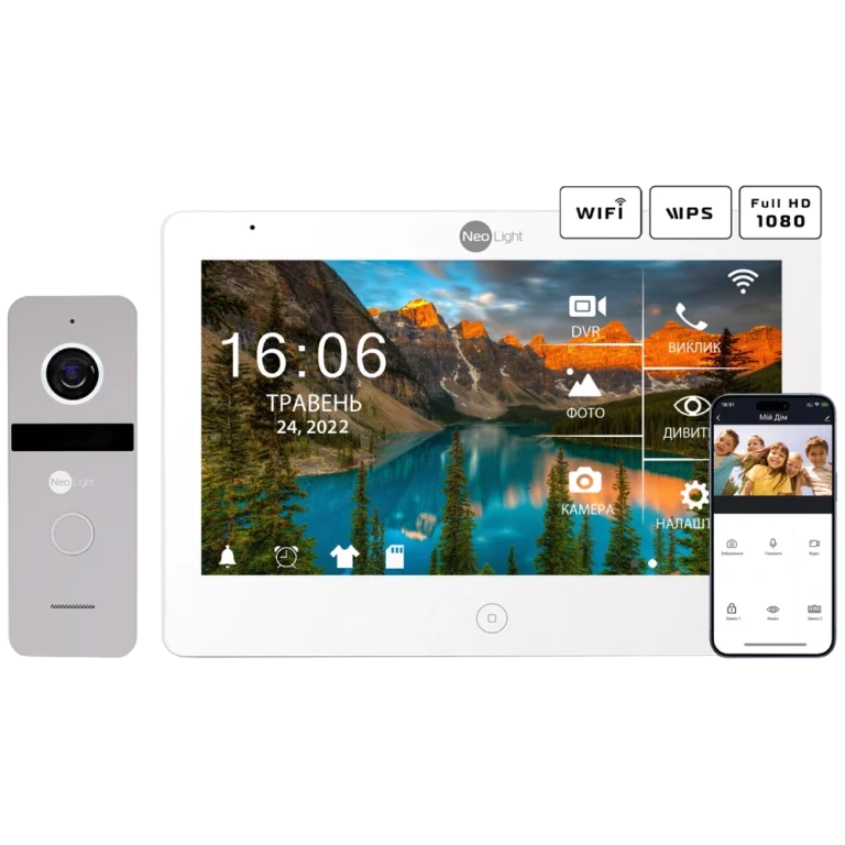 Комплект відеодомофону Neolight ALPHA Hybrid Black + PRIME FHD Silver с уголком