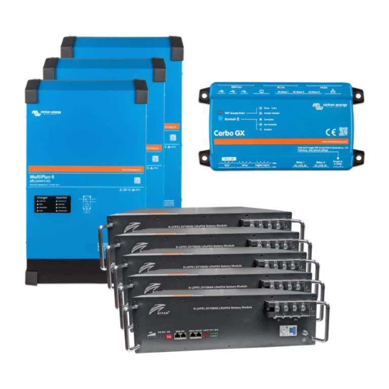 Система безперебійного живлення3 фази, 12кВт, 25кВт●год VictronEnergy MultiPlus-II + Ritar R-LFP51.2V100AH