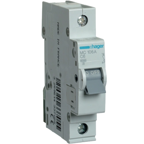 Автоматичний вимикач 1P 6kA C-6A 1M Hager MC106A