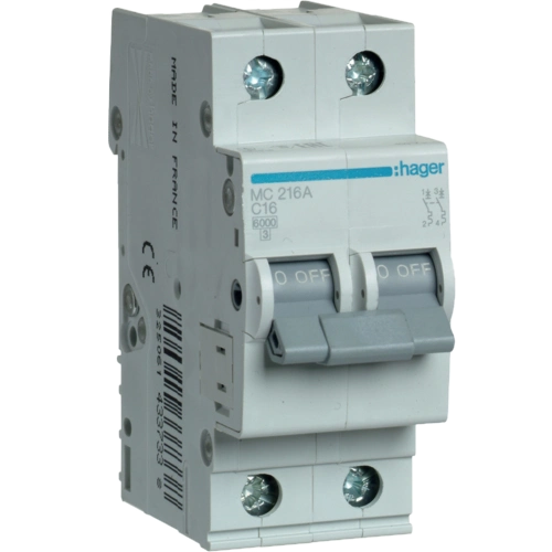 Автоматичний вимикач 2P 6kA C-16A 2M Hager MCN216