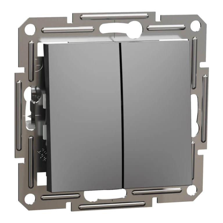 Вимикач 2-клавішний антрацит, пластик, без підсвічування та індикації, для врізного монтажу Schneider Electric EPH0300171 Asfora