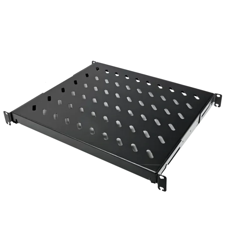 Полиця 19″ 4 точки кріпл., 850мм глиб., перфорована, т.м.2мм, чорна Voltronic 4962