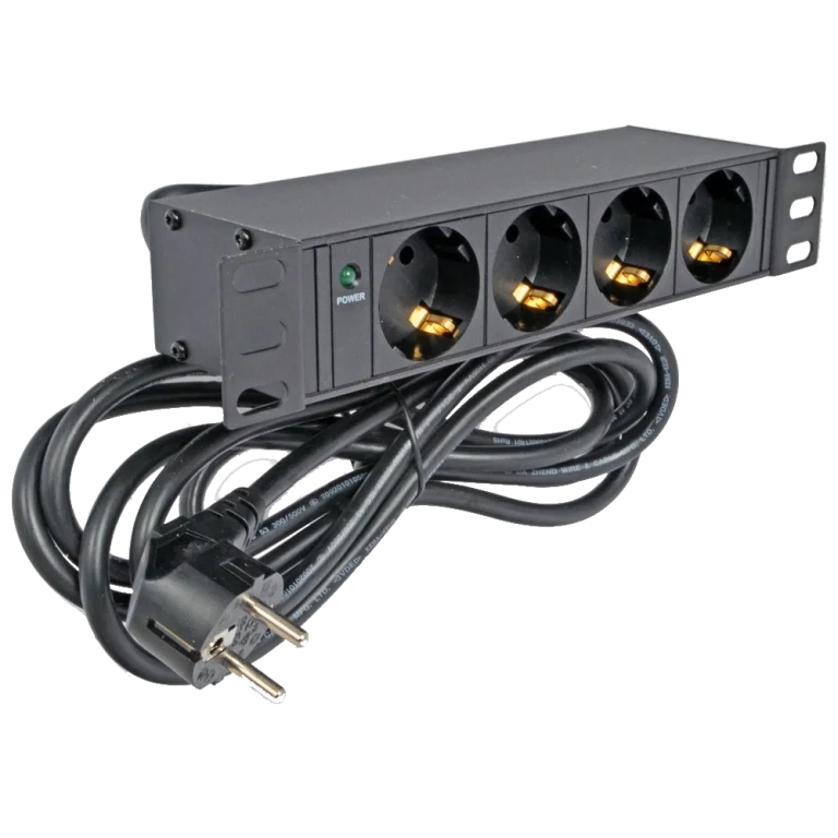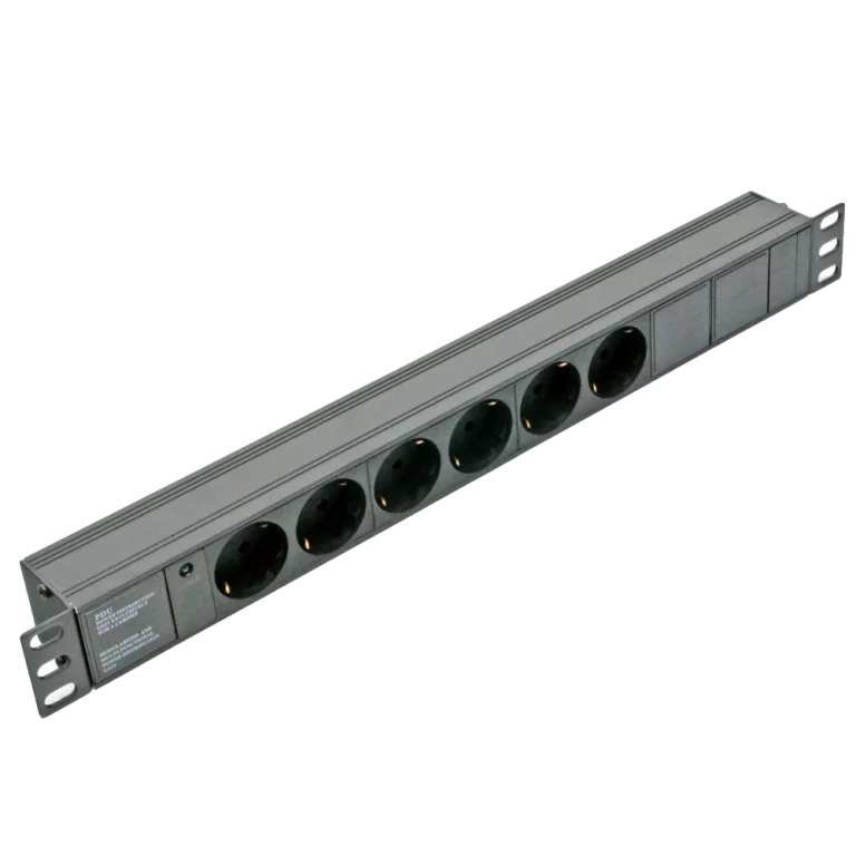 Блок на 6 роз. нім. станд. 10А без шнура з індикатором 19″ 1U