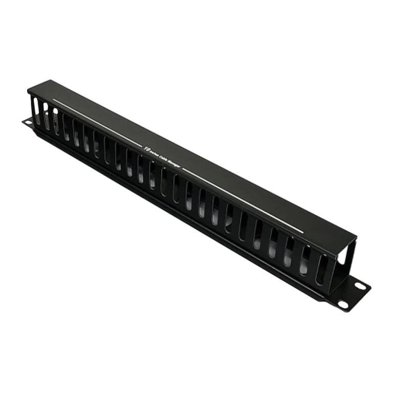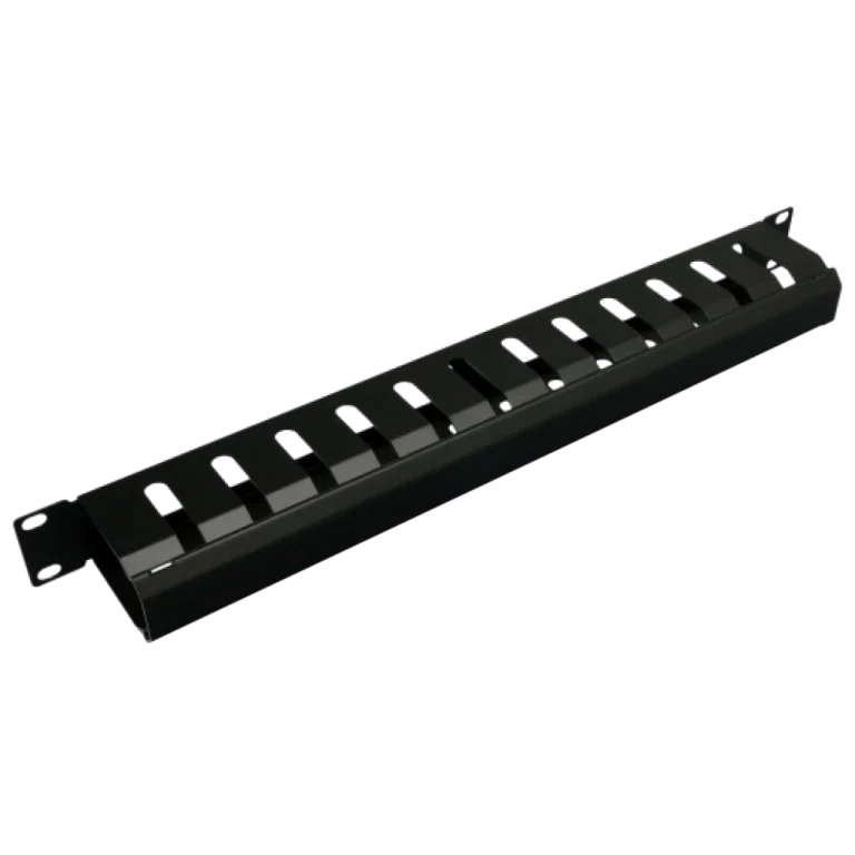 Кабельний організатор 1U металевий перфорований з кришкою, чорний 1U