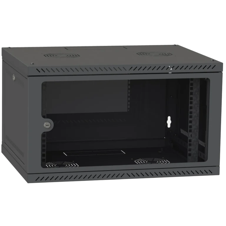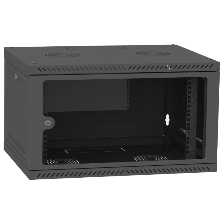 Шафа телекомунікаційна двері скло (чорна) IPCOM 6U 600×450