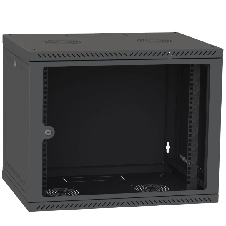 Шафа телекомунікаційна двері скло (чорна) IPCOM 9U 600×450