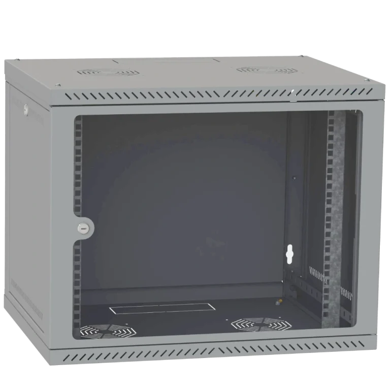 Шафа телекомунікаційна двері скло (сіра) IPCOM 9U 600×600