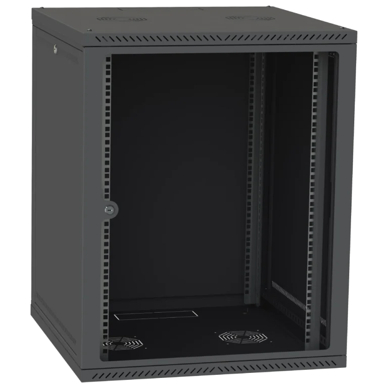 Шафа телекомунікаційна двері скло (чорна) IPCOM 12U 600×450