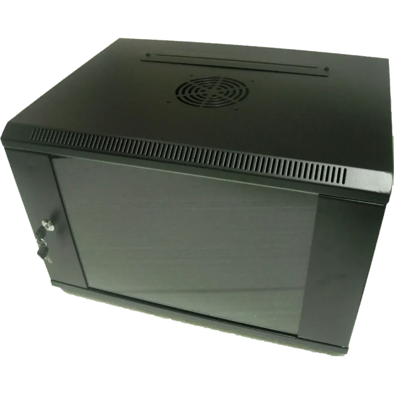Шафа загартоване скло, чорна. сталь 1,2мм з замком Merlion 6U, 600*450*367