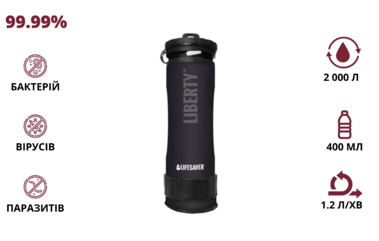 Портативна пляшка для очищення води LifeSaver Liberty Black