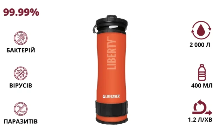 Портативна пляшка для очищення води LifeSaver Liberty Orange