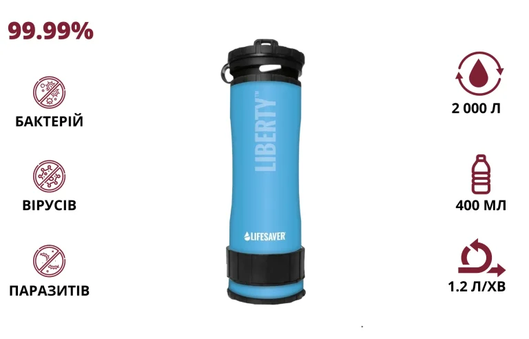 Портативна пляшка для очищення води LifeSaver Liberty Blue