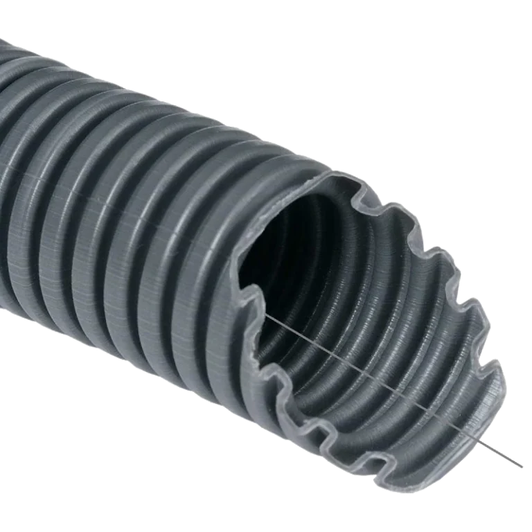 Труба гофрована електромонтажна з протяжкою темно-сіра Kopos 320 N/5см ПВХ 16мм 50 м