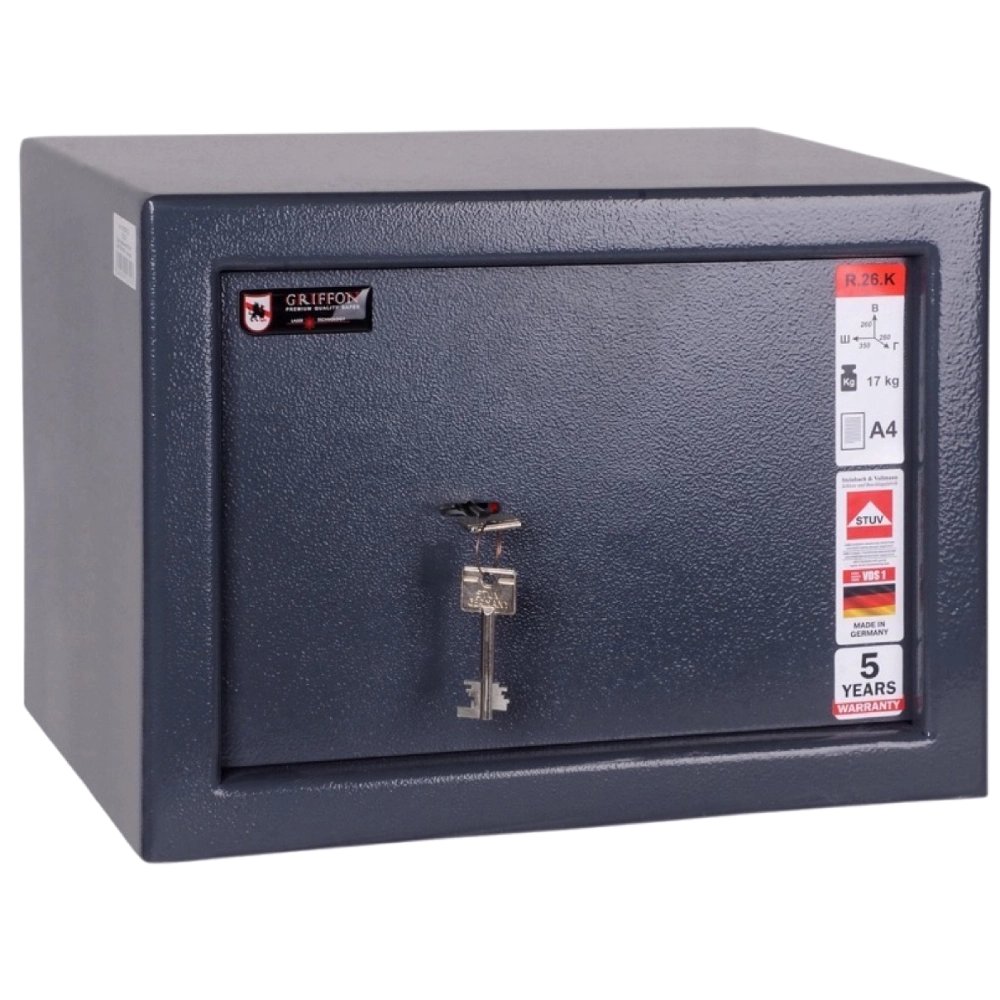 Сейфи офісні та меблеві TM Griffon серії R (Robbery) – оптимальний та надійний варіант виробів для зберігання цінностей та важливої документації у будь-якій квартирі чи установі. У переліку основних переваг цієї продукції: товщина металевих дверей – 5 мм, товщина корпусного металу – 2 мм, сейфи обладнані сталевими ригелями, полицею, що переміщається.