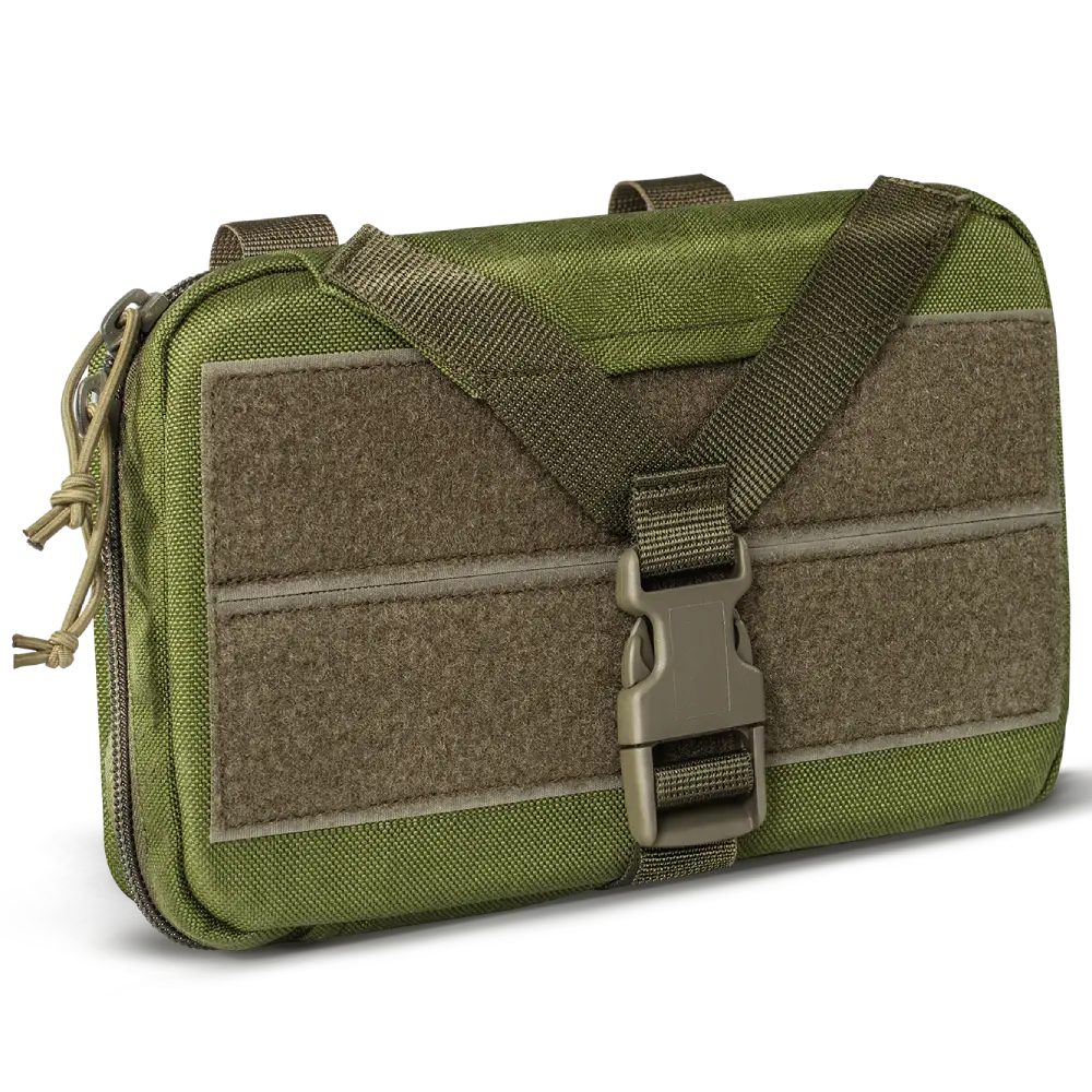 На фронті активно використовують електронне обладнання, включаючи планшети. Але щоб зберігати їхню цілісність і працездатність у бою, знадобиться підсумок U-WIN Olive. Це спеціально призначена для планшетів та записів сумка, в якій пристрій безпечно та зручно розміщується. Ремінна система дозволяє прикріпити підсумок до форми, що особливо зручно в польових умовах. За бажання його можна відстебнути, залишивши в бліндажі. Крім основного відсіку, є додаткові кишеньки, які підходять для дрібниць або паперів. Планшетний комп’ютер утримується на окремій панелі всередині, що додатково впливає на його безпеку. Вміст захищений від попадання вологи та невеликих ударів завдяки міцній тканині та фурнітурі.