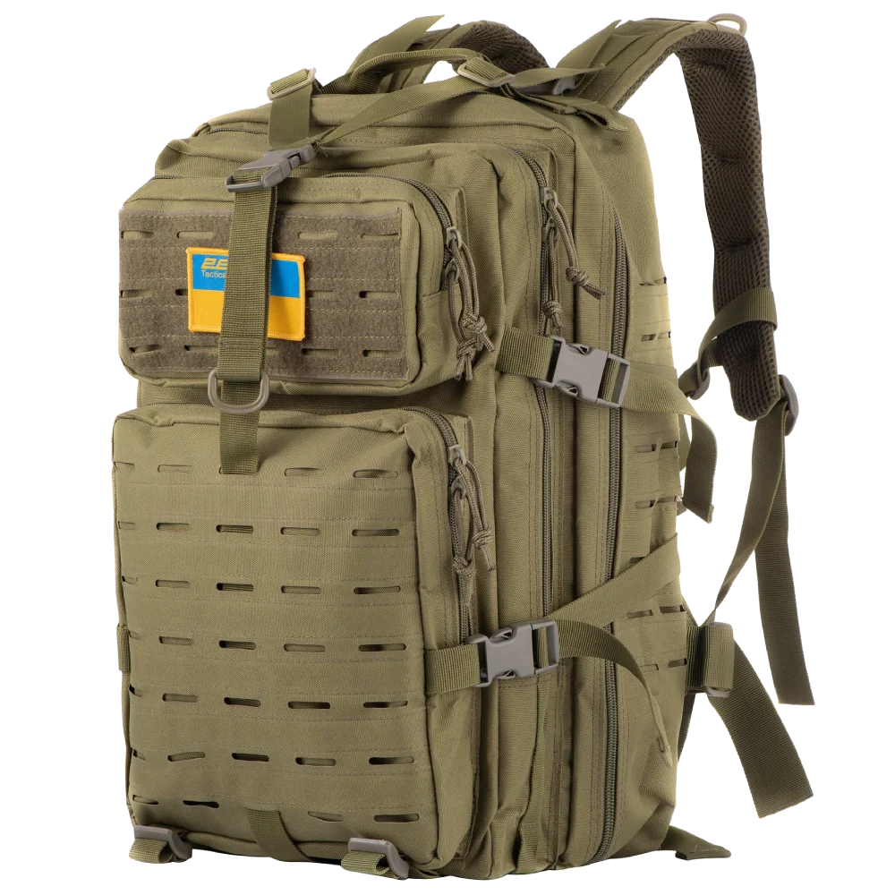 Бічні компресійні ремені для затягування рюкзака з карабінами фастекс, плечові ремені, посилені додатковими стропами та регулюванням по довжині, із системою кріплення Laser Cut, система Molle |