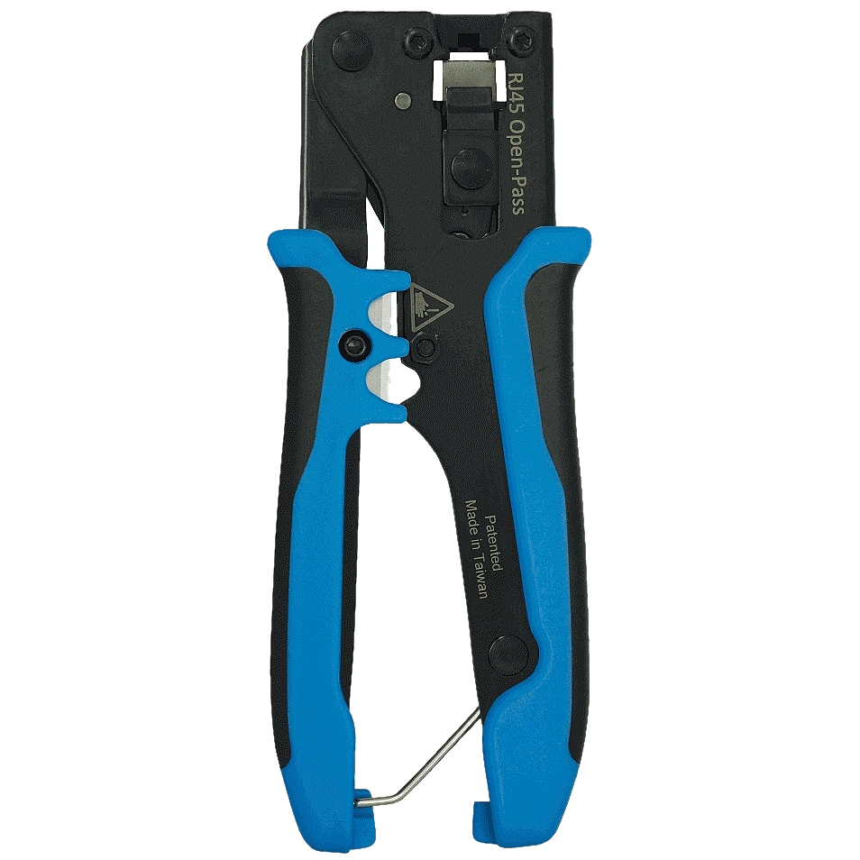 Інноваційний наскрізний ручний інструмент для обтискання конекторів 8P. Призначений для всіх телекомунікаційних та мережевих установників. Є вбудовані кусачки та інструмент для зачистки кабелю. Застосовується для монтажу наскрізних конекторів RJ45.