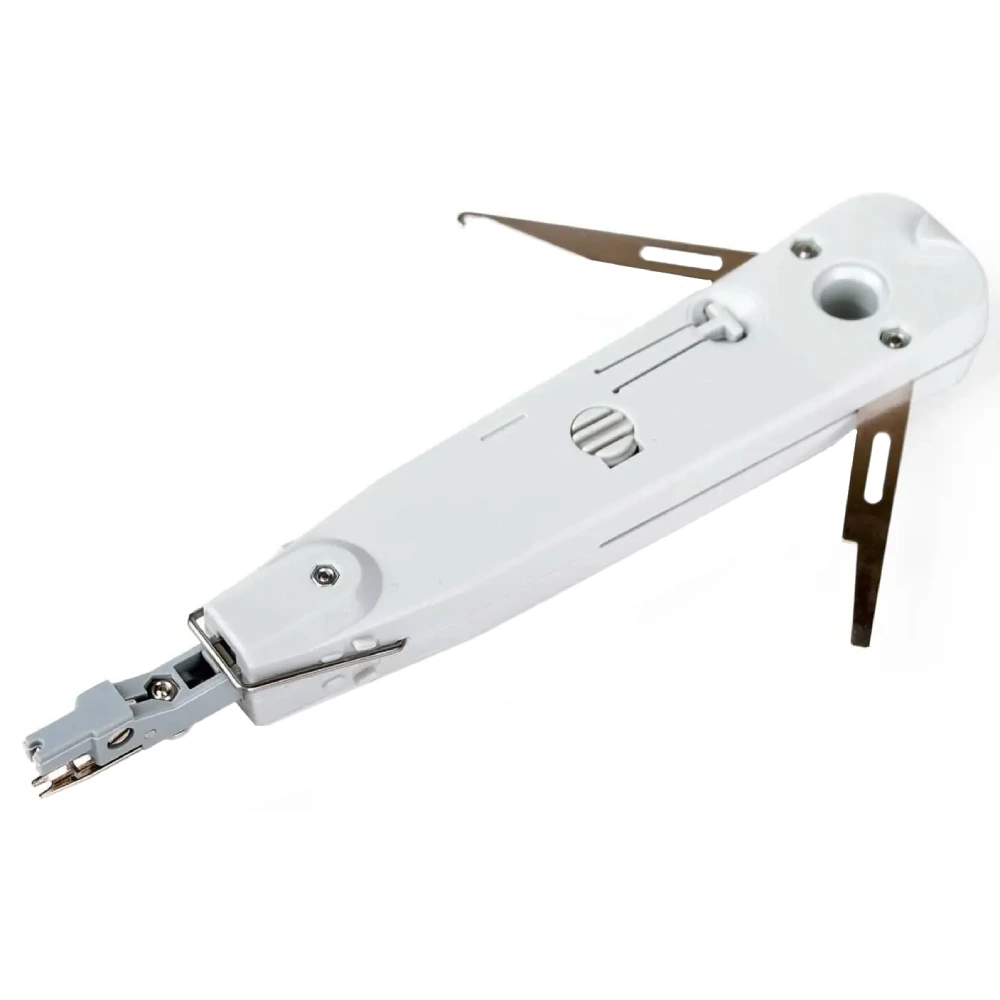 Тип інструмента для закладення крученої пари; Тип закладаємих контактів: тип 110, тип Krone, IDC (Dual); Особливості регулювання ударної сили, ножиці для обрізки жив, блокиратор ріжучого пристрою, гачок для вилучення жив; Матеріал Корпус: полібутилентерефталат, Металеві складові: загартована сталь із нікелевим покриттям