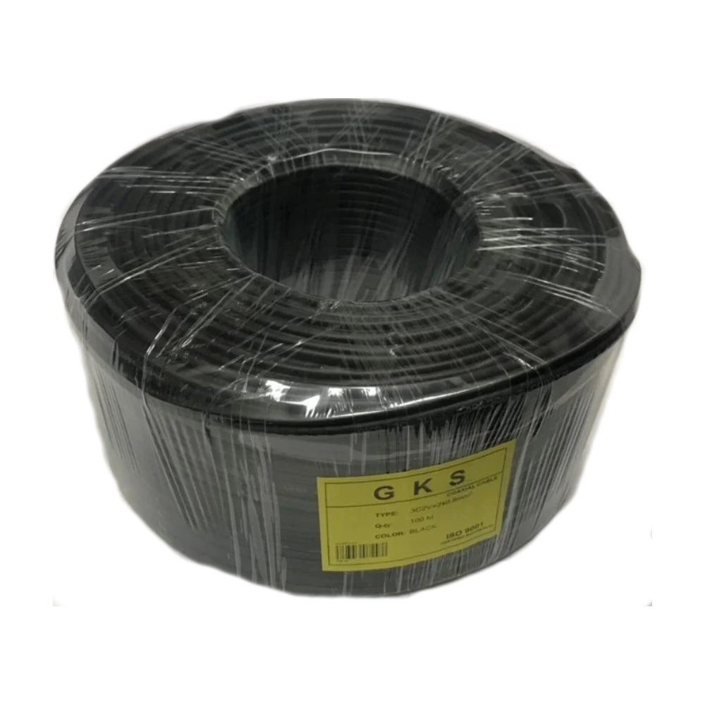 Коаксіальний кабель GKS 3C2V + 2×0.5 комбінований для систем відеоспостереження з хвильовим опором коаксіальної частини кабелю 75 Ом. Кабель являє собою комбіновану конструкцію з коаксіального кабелю 3c2v і додаткового силового кабелю 2х0,5. Використання даного кабелю для з'єднання камер відеоспостереження з реєстратором дуже зручно, так як немає необхідності в монтажі додаткового силового кабелю для живлення відеокамер – він уже суміщений з коаксіальним. Даний кабель можна використовувати як усередині приміщення, так і за його межами.