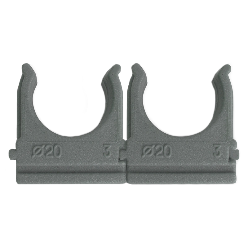 Кліпса для гофротруби Ø 20 сіра виробляється з поліпропілену. Підходить для фіксації гофрованих та гладких труб, а також відкритого кабелю з максимальним діаметром у 20 мм. Використовується при прокладанні кабельних трас та електромереж різного призначення всередині та поза приміщенням. Являє собою затискувач з отвором у основі, що встановлюється на робочу поверхню за допомогою шурупа або дюбеля. При розрахунку витрати скоби для кріплення метра труби або кабелю на монтажну поверхню треба врахувати можливість їх провису та запобігти їй. За потреби виріб можна з’єднати у блоки, зменшивши при цьому кількість монтажних отворів для установлення.