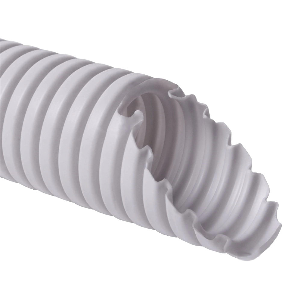 Гнучка пластикова гофрована труба (гофра) застосовується для монтажу прихованої електричної проводки. Підходить для встановлення на поверхні, у стяжці, під штукатуркою. Застосовується для монтажу в пустотілі стіни, штукатурені стіни та стелі. Для легкого та безпечного затягування кабелю в гофру, усередині неї протягнута сталева протяжка. Гофротруба виготовлена із самозагасаючого ПВХ стійкого до дії ультрафіолету, має механічну стійкість 320 N на 5см. Дозволяється установка в приміщеннях з можливістю вибуху горючих газів і парів зони 2, а також приміщення з можливістю вибуху горючого пилу зони 22.