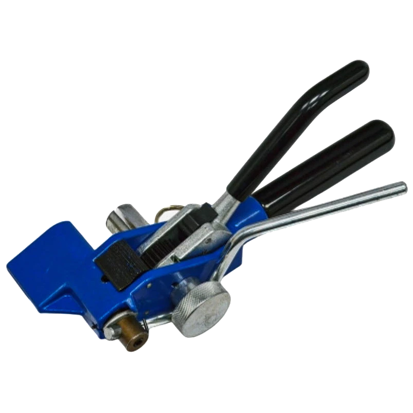 Натягувач для бандажної стрічки з храповим механізмом служить для натягу, загинання та обрізання сталевої бандажної стрічки.Цей ручний інструмент необхідний при монтажі арматури (кронштейнів для вуличного освітлення та гаків для монтажу самонесучих ізольованих проводів) на опори. Даний інструмент дозволяє швидко та якісно виконати монтаж. Максимальна ширина бандажної стрічки, яку можна обрізати – 20 мм