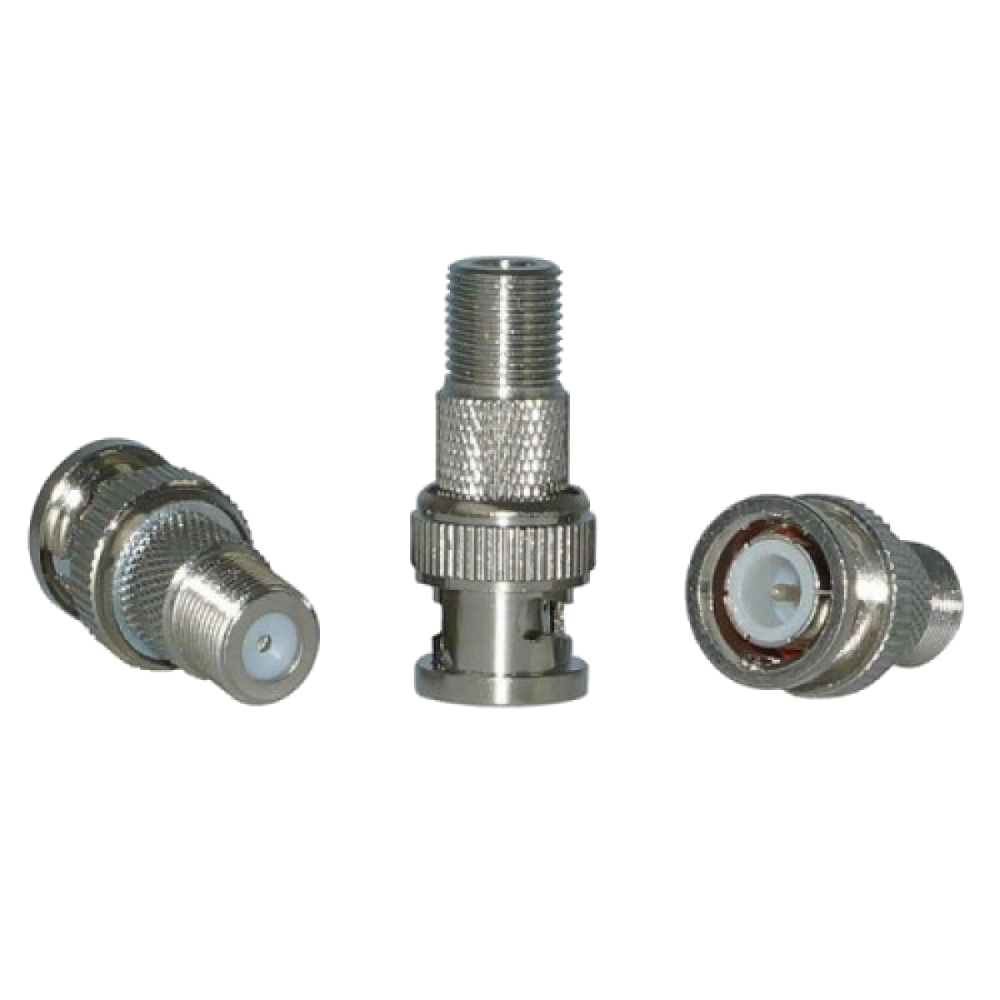 Перехідник BNC – F. З однієї сторони має гніздо F, з іншої BNC штир. BNC роз’єми необхідні для подачі відео і аудіо сигналів. Перехідник штекер BNC – гніздо F дозволяє швидко і надійно підключити коаксіальний кабель будь-якого типу до BNC роз’єму обладнання, використовуючи відповідний кабелю F коннектор.