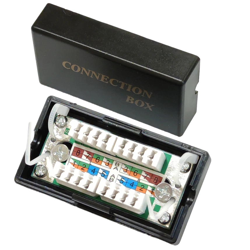 З’єднувальна розетка служить для з’єднання з мінімальним загасанням мідного сигналу кабелю категорії 5е. Є пластмасовою розбірною коробочкою, всередині знаходяться місця для жил кабелів під «забивання». Тип контактів: Krone IDC блок із міткою колірного коду